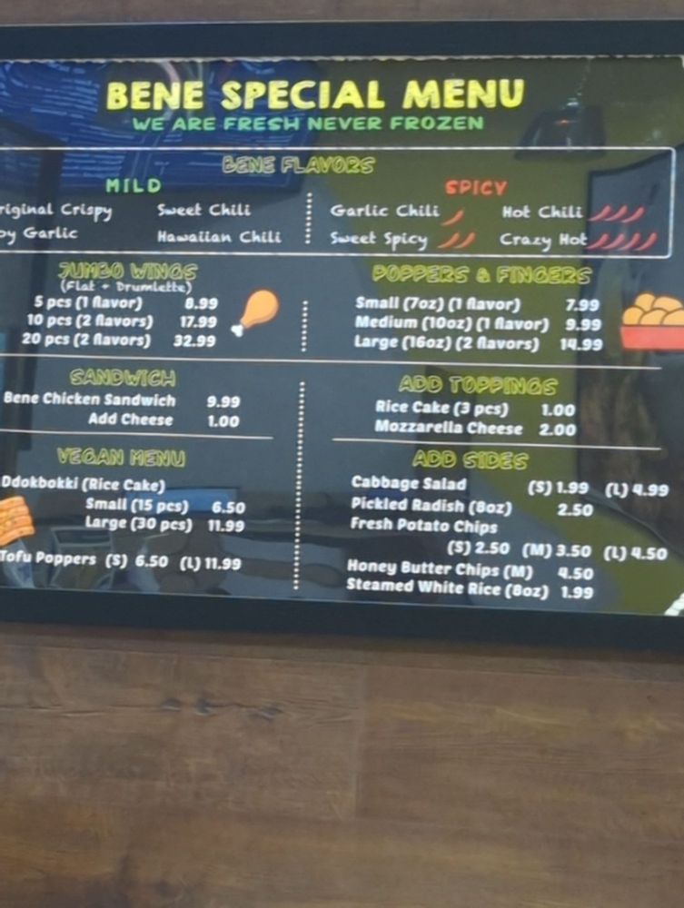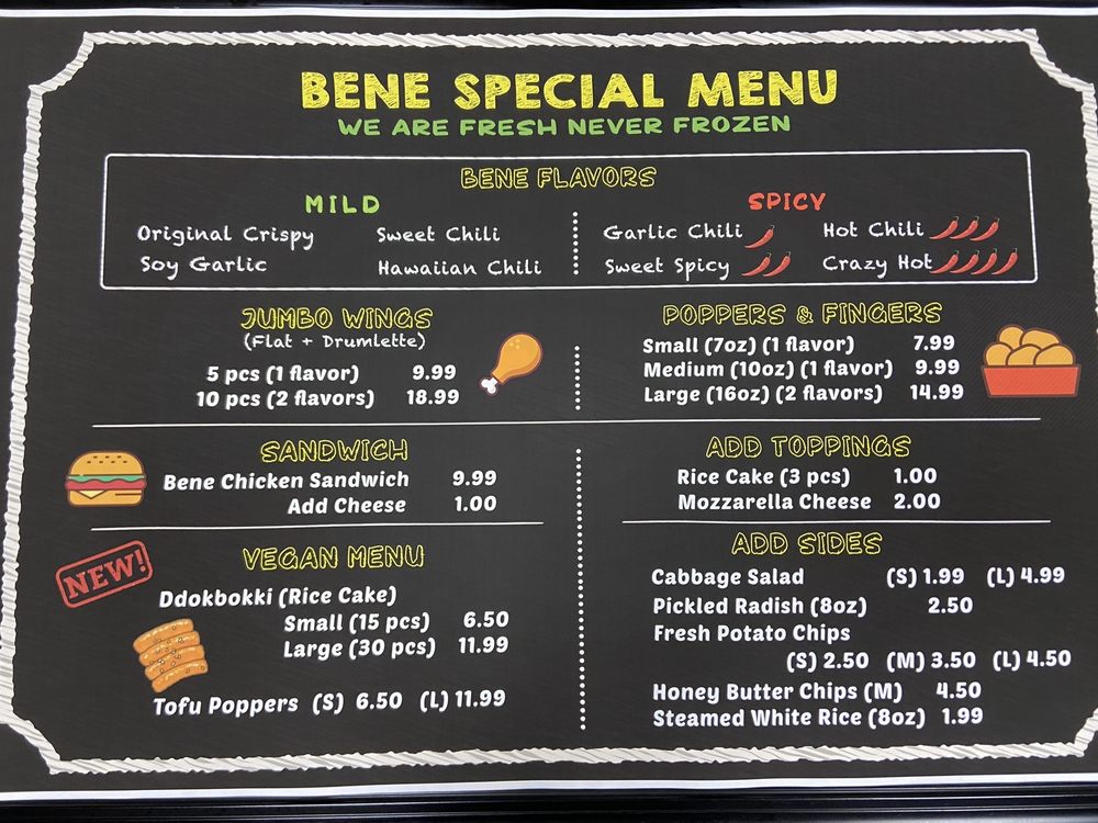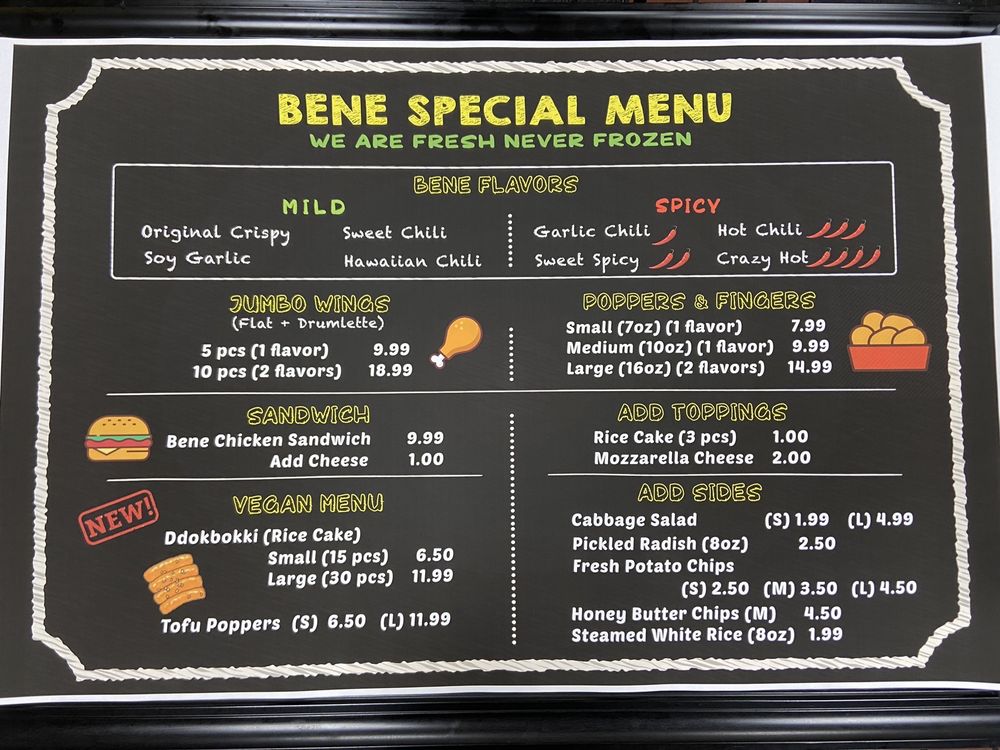 Bene Chicken Cafe - 베네치킨 Menu